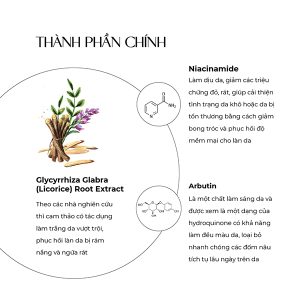 + Cistus Incanus Flower/Leaf/Stem Extract: chiết xuất hoa hồng đá làm trắng kép, không chỉ ức chế sự kích thích sản sinh hắc sắc tố mà còn ức chế lượng hắc sắc tố được hình thành.